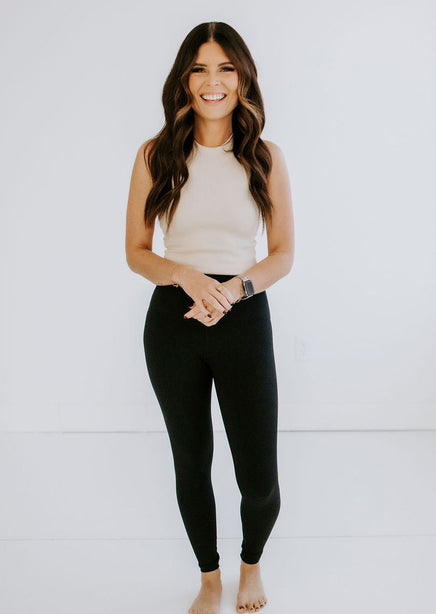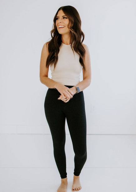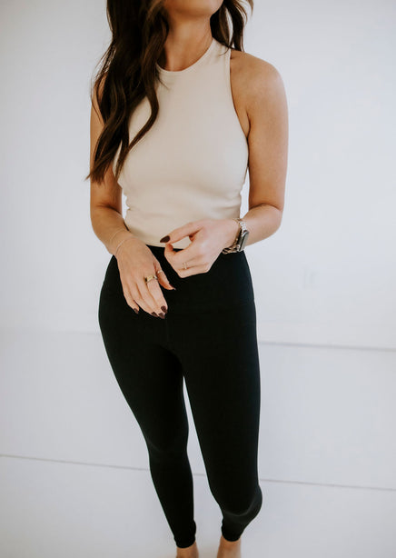 Wherever you're going, go comfortably in this brami top. Super stretchy ribbed knit shapes this little tank-meets-bralette. A high neckline, fitted bodice with a cropped hem, and a V-neck racerback design keeps you feeling secure as you move throughout the day. An elevated essential to accommodate every look. No closures. Not lined. For a lounge outfit, pair it with the Essential Joggers by Lily and Lottie. For a night out, wear under any one of the Lily and Lottie Jackets!