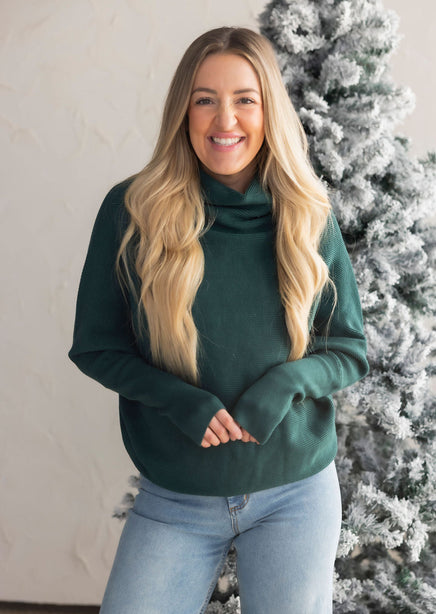 Elevating the basic pullover game in way only LB knows how to do! Crafted from a stretchy poly-blend, this next-level pullover features a funnel neckline, long dolman sleeves, and a relaxed bodice. The stretchy, ribbed body pairs perfectly under shackets, coats, or rock it on its own! The pullover you never knew you needed but now can't live without. Nessa is wearing a size small.