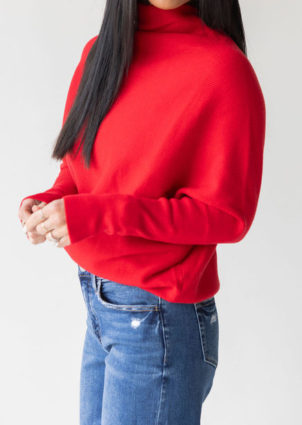 Elevating the basic pullover game in way only LB knows how to do! Crafted from a stretchy poly-blend, this next-level pullover features a funnel neckline, long dolman sleeves, and a relaxed bodice. The stretchy, ribbed body pairs perfectly under shackets, coats, or rock it on its own! The pullover you never knew you needed but now can't live without. Laurie is wearing a size small.
