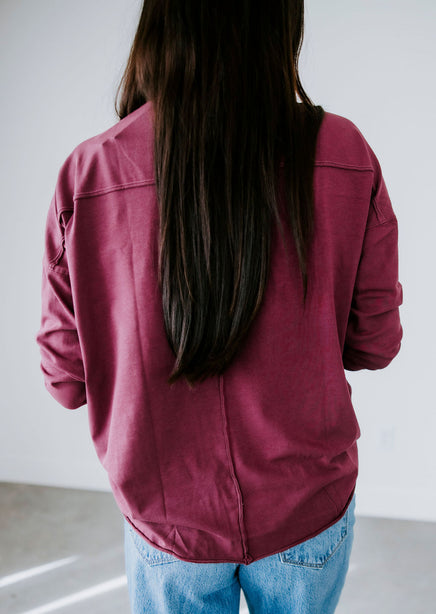 - Raw edge details neck, cuffs & hem