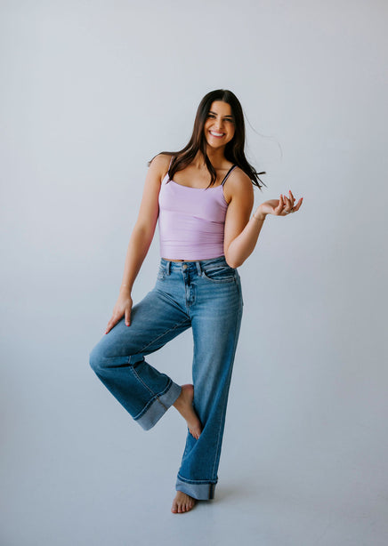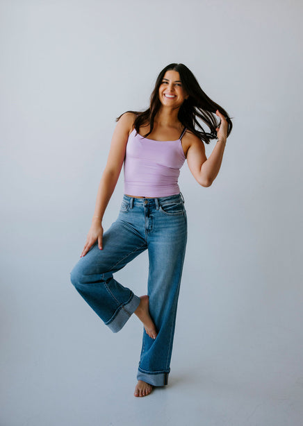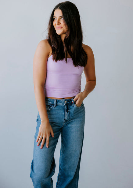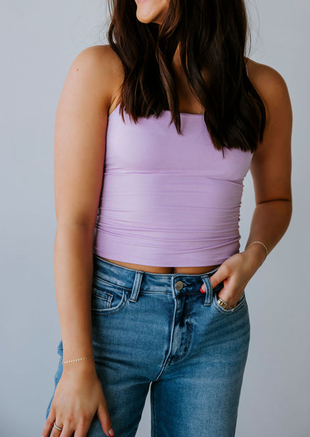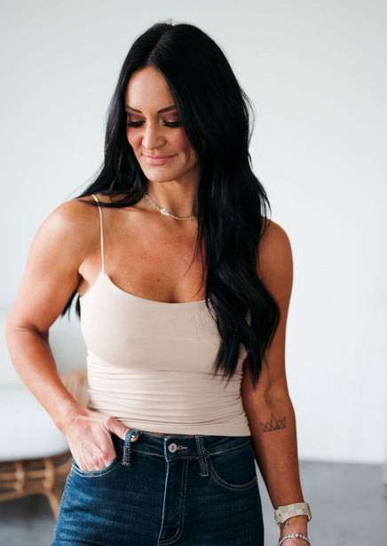 With its basic tank style, spaghetti straps, and lightweight, stretch fabric, it hits at the hips and provides a smooth, double-lined fit. Perfect for layering under your fave lace top. Laurie, Brittany, Madison and Nessa are wearing size smalls.