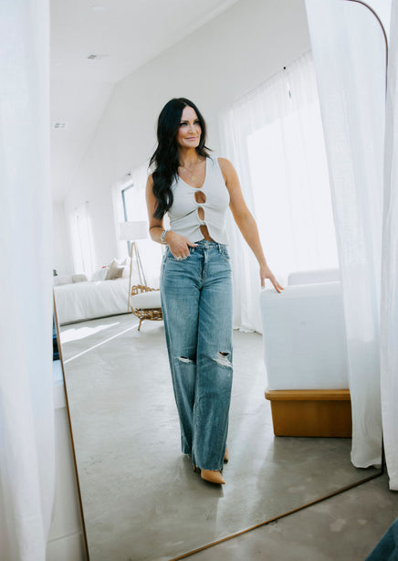 Laurie typically wears a size 25/26 but prefers a size 24 in these jeans. If you are between sizes, we recommend sizing down.