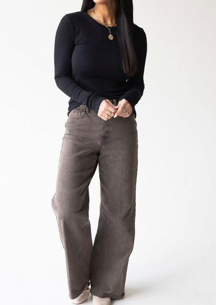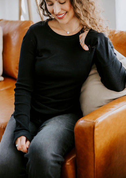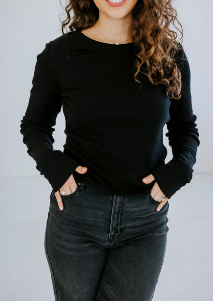Upgrade your collection of basics with this soft long sleeve top! Once you put this on and see how wonderful it feels, you will want to get it in every color! Features a crew neck and ribbed long sleeves. Lightweight fabrication makes this top perfect for layering. Destined to be one of your go-to faves! Whether she's worn alone or layered under a slip dress this top is seriously cute! This beyond-basic tee starts with a stretchy knit construction, complete with ribbed accents at the sleeves and neckline.