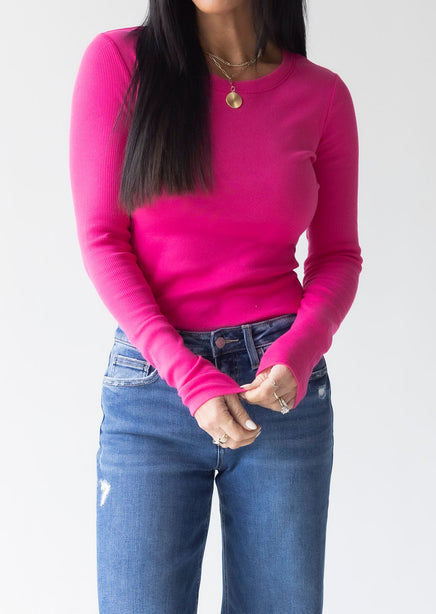 Upgrade your collection of basics with this soft long sleeve top! Once you put this on and see how wonderful it feels, you will want to get it in every color! Features a crew neck and ribbed long sleeves. Lightweight fabrication makes this top perfect for layering. Destined to be one of your go-to faves! Whether she's worn alone or layered under a slip dress this top is seriously cute! This beyond-basic tee starts with a stretchy knit construction, complete with ribbed accents at the sleeves and neckline.