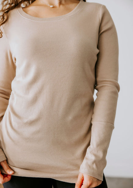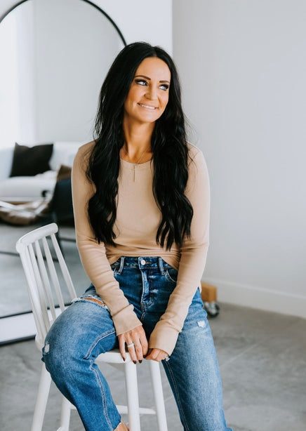 Upgrade your collection of basics with this soft long sleeve top! Once you put this on and see how wonderful it feels, you will want to get it in every color! Features a crew neck and ribbed long sleeves. Lightweight fabrication makes this top perfect for layering. Destined to be one of your go-to faves! Whether she's worn alone or layered under a slip dress this top is seriously cute! This beyond-basic tee starts with a stretchy knit construction, complete with ribbed accents at the sleeves and neckline.
