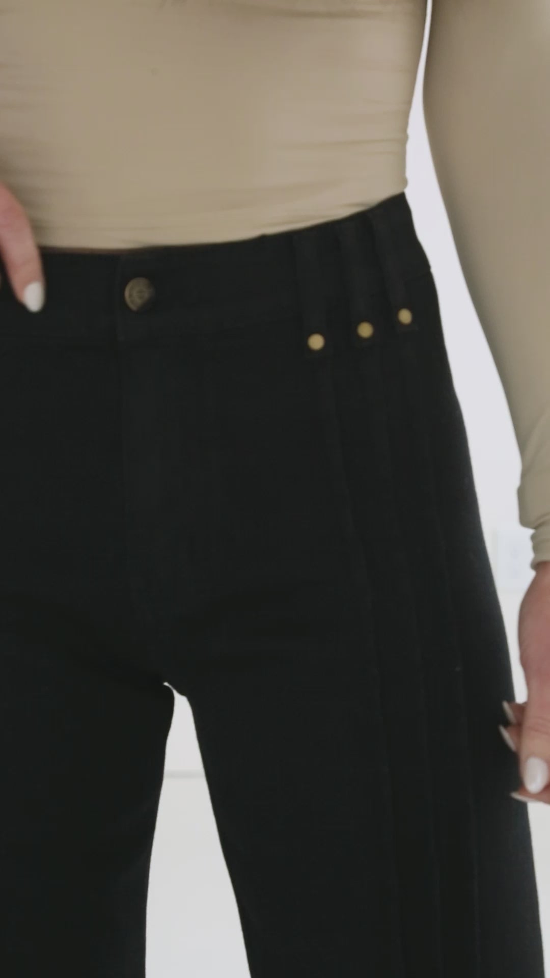 - Zip fly with button closure