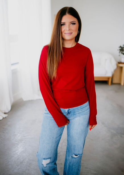 Experience the ultimate comfort and style with the Not So Basic Basic Long Sleeve by Lily & Lottie. Featuring the fan-favorite Not So Basic Tee, now with long sleeves and a relaxed fit for effortless wear. You'll love the variety of colors to choose from and the classic round neckline.