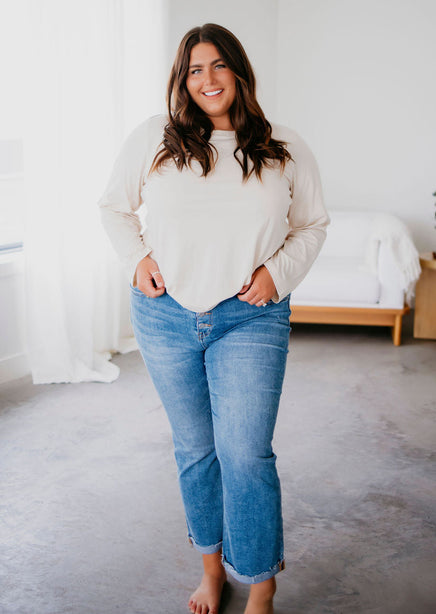 Experience the ultimate comfort and style with the Not So Basic Basic Long Sleeve by Lily & Lottie. Featuring the fan-favorite Not So Basic Tee, now with long sleeves and a relaxed fit for effortless wear. You'll love the variety of colors to choose from and the classic round neckline.