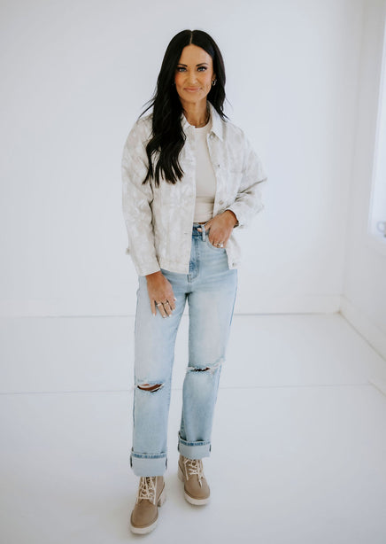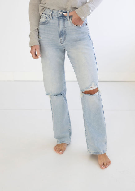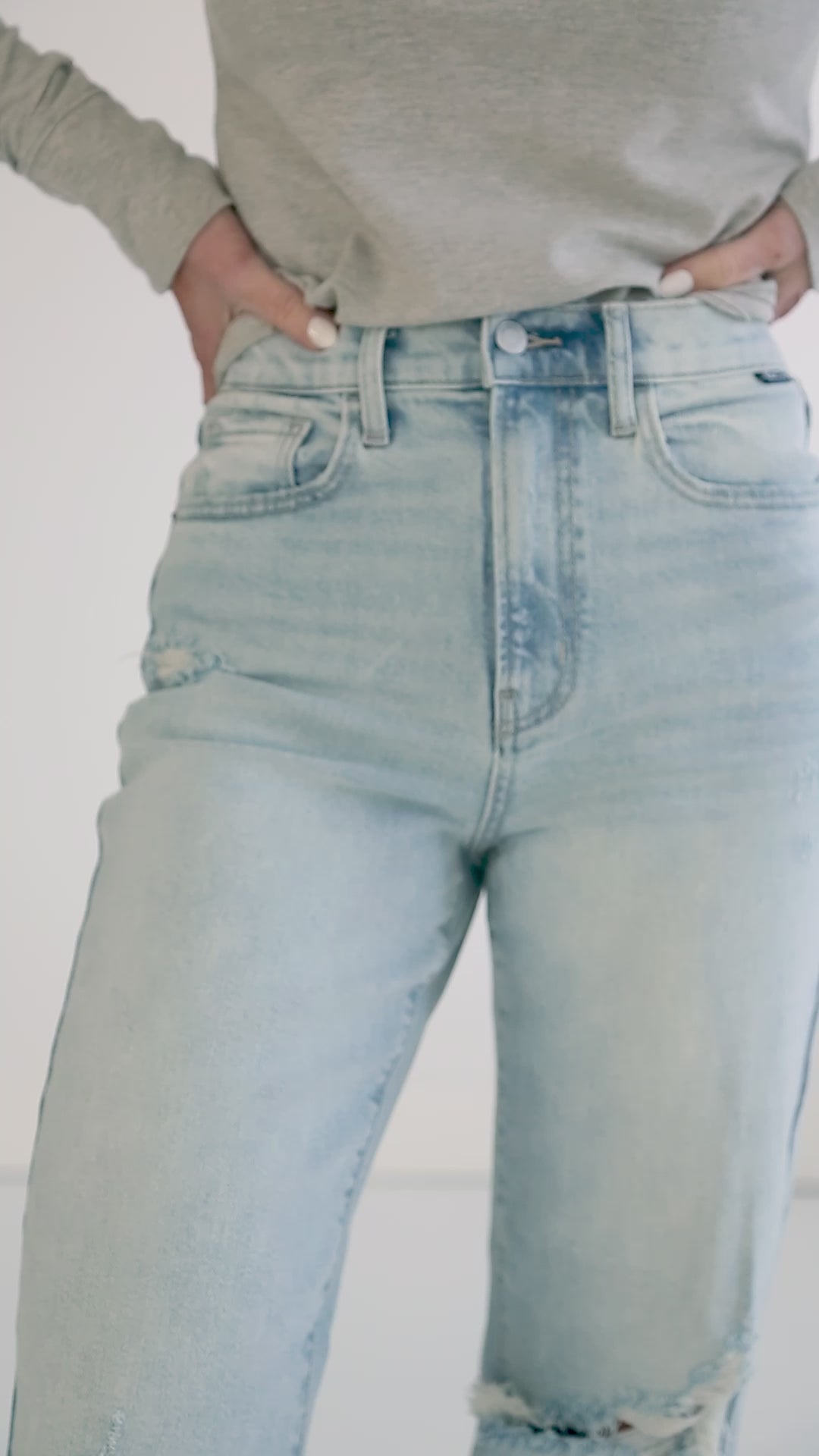 - Intentional distressing throughout