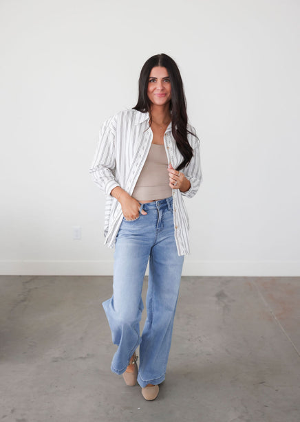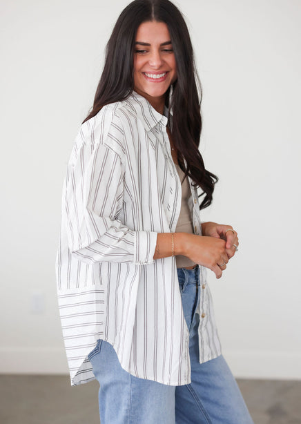 Rowena Striped Button Top