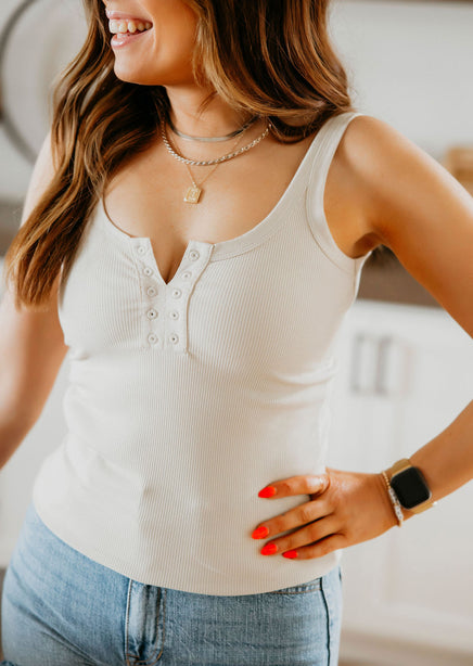 Expertly crafted by Lily & Lottie, the Tessa Eyelet Tank offers a semi-fitted design, while the thick straps provide comfort and support. The front features intricate eyelet hole details, adding a touch of charm to this ribbed tank. Perfect for everyday wear with a hint of elegance.