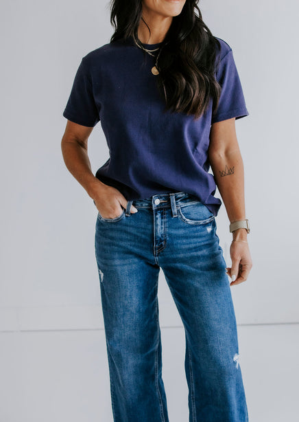 This Westin Waffle Tee is the perfect layering piece. Its waffle texture gives it a unique look and soft, comfortable feel. It features a rounded neckline, short sleeves, and a relaxed fit for a flattering silhouette. Light acid washing creates a subtle effect. Add a touch of style to your wardrobe with this one-of-a-kind top. Pair with your favorite denim bottoms and sneakers for a casual, on-trend look.